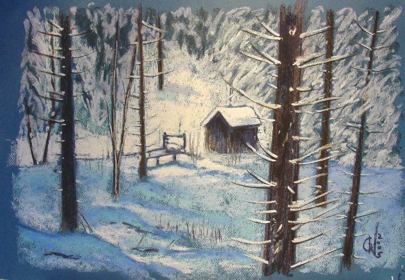 Bergkuppen bis zum Brocken. Mit Pastellkreide auf getöntem Papier